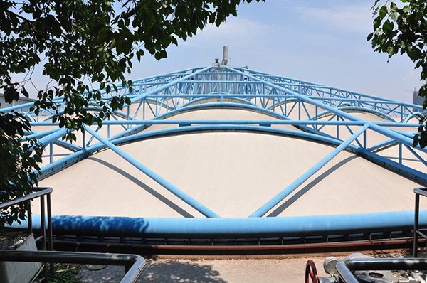 防腐效果強(qiáng)。由于膜結(jié)構(gòu)建筑結(jié)構(gòu)的特殊性,可將鋼架架設(shè)在外面,只有膜材部分接觸初沉池,基本解決了腐蝕問題,而且將來也不用考慮維護(hù)問題。