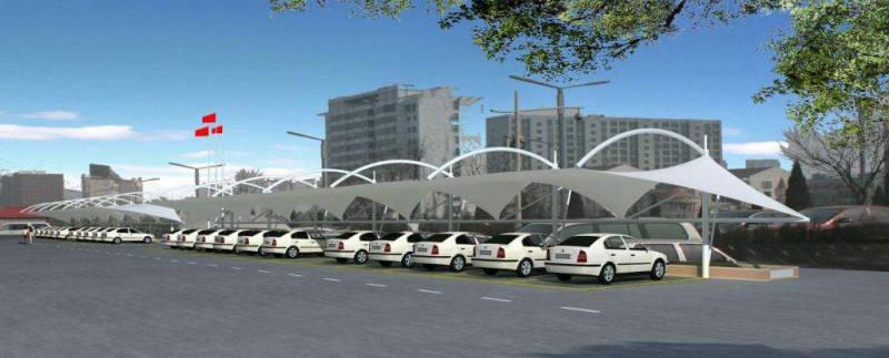 張拉膜結(jié)構(gòu)車棚具有十分良好的承載性能,能以很小的厚度承受相當(dāng)大的荷載。車棚的強(qiáng)度和剛度主要是利用了其幾何形狀的合理性,以材料直接受壓來代替彎曲內(nèi)力,從而充分發(fā)揮材料的潛力。因此車棚是一種強(qiáng)度高、剛度大、材料省的即經(jīng)濟(jì)又合理的結(jié)構(gòu)形式。張拉膜結(jié)構(gòu)停車棚已經(jīng)融入到了我們的生活中,外觀靚麗,實(shí)用性較高深得用戶者們的喜愛,多種優(yōu)點(diǎn)豐富便捷了我們的生活。